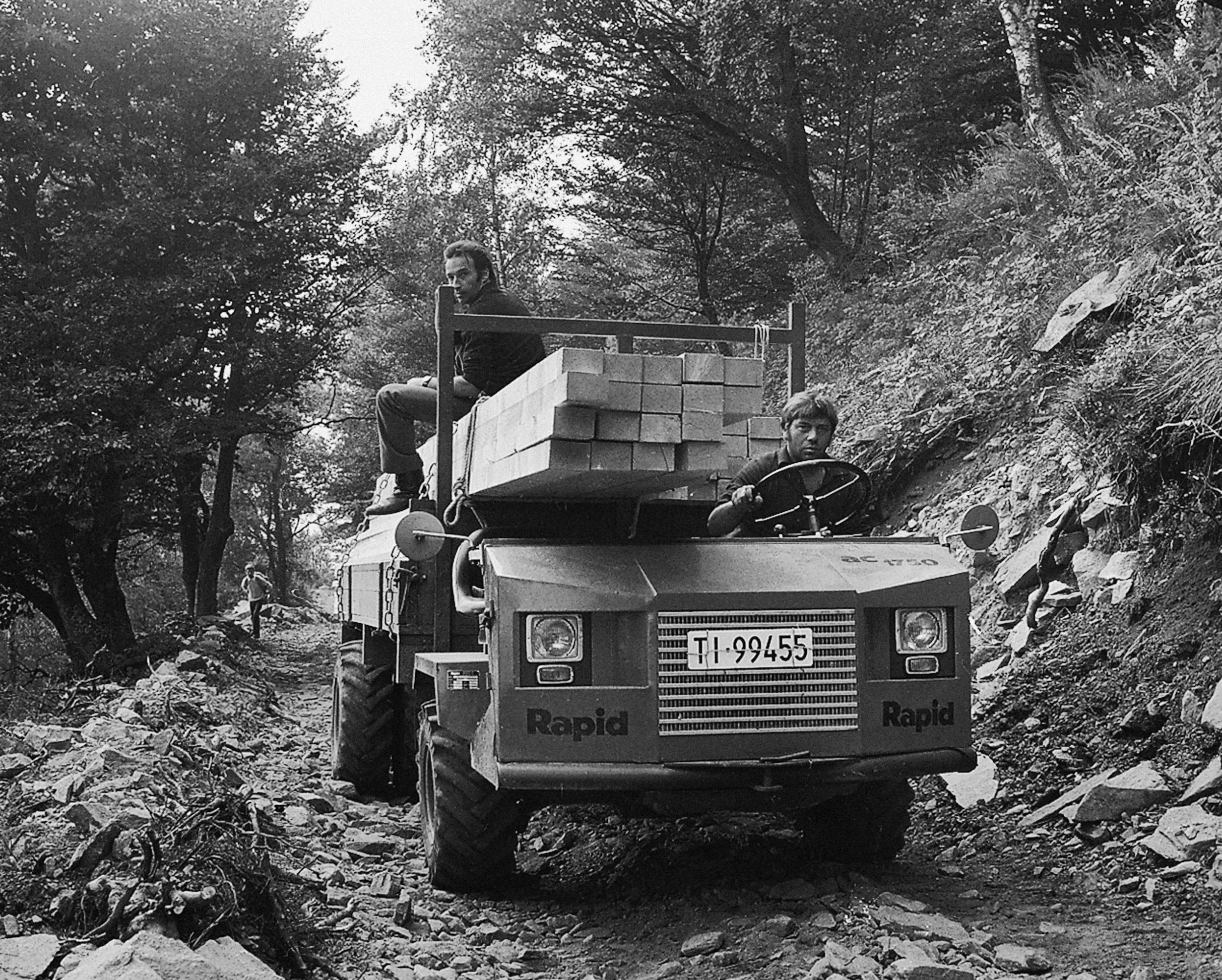 Visto che abbiamo toccato l’argomento: prossimamente sarà costruita una cabinovia. Purtroppo, però, queste funivie hanno la brutta abitudine di salire ripide sul pendio della montagna e attraversare un’area praticamente inaccessibile. Nel corso di tali lavori incontreremo sicuramente dei sassi – e non solo quelli metaforici evocati dai nostri scrittori. No, sassi veri e propri che pesano decine di chili. E che richiedono supporto aereo. Chiaro. ehm, lasciate che ve lo chieda: che ne dite di una terza impresa familiare? Faciliterebbe di molto i lavori di costruzione sul Monte Tamaro, no? Ok. Fatto. Procede senza fretta, ma di sicuro sa come fare. Ergo, Egidio Cattaneo fonda la EliTicino SA nel 1966.