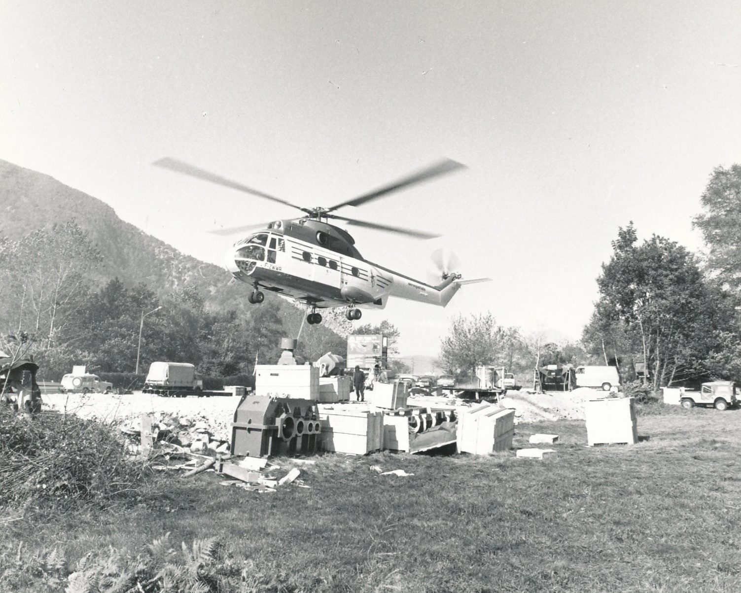 Nel maggio del 1971, le macchine e gli elicotteri si mettono al lavoro.